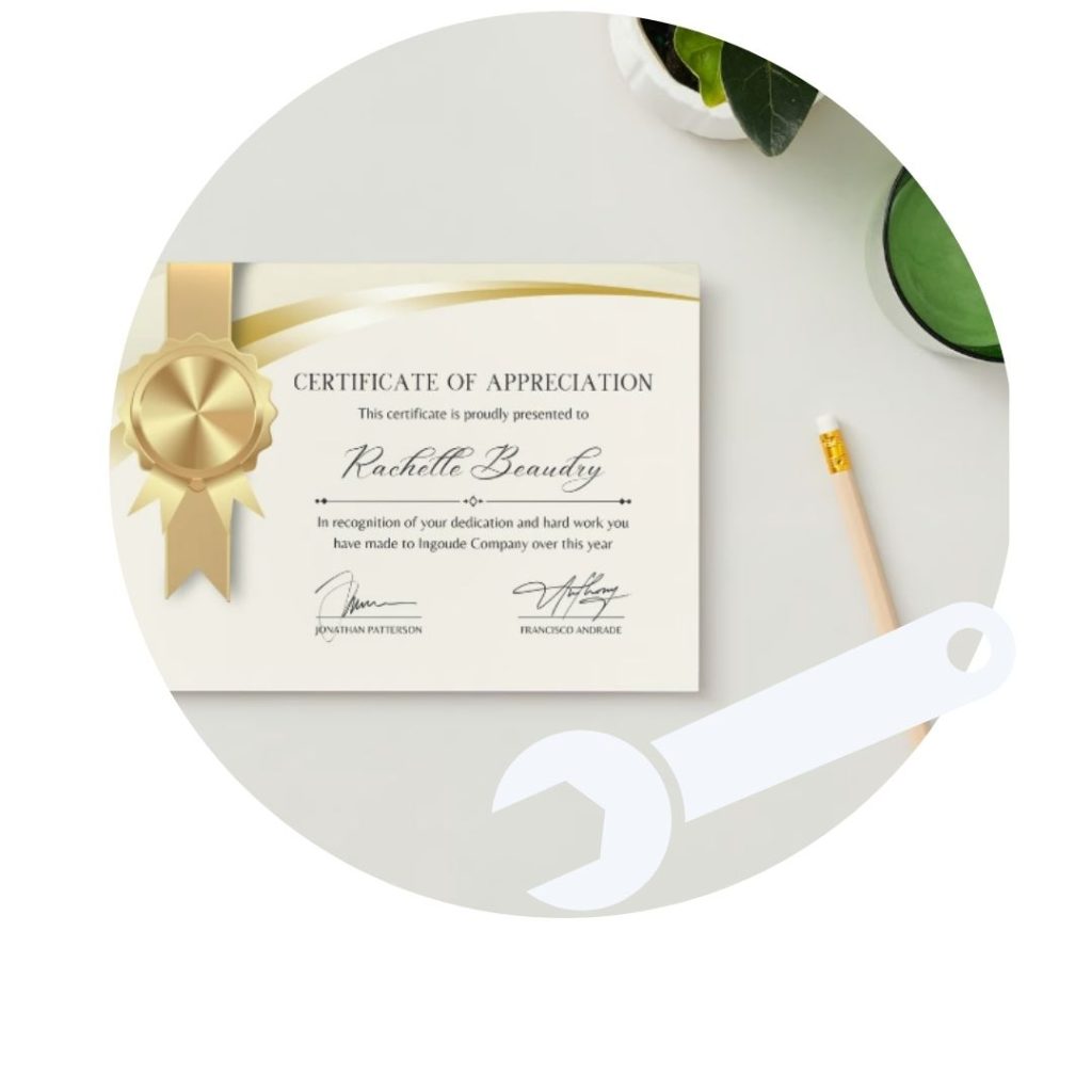 [Naam cursist] heeft met goed resultaat alle onderstaande lesonderdelen doorlopen en tevens de praktijkopdracht met goed gevolg afgerond. Uit naam van [Naam stagebegeleider] ontvangt de deelnemer hierbij het ‘De sleutel tot Succes’ certificaat: